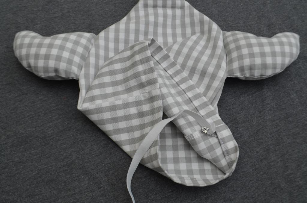 DSC_0845 1Zuletzt durch die offene Stelle des Tunnels eine Gummi durchziehen und Gummienden zusammennähen.